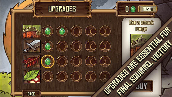 游戏中,你需要领导你的松鼠军队带上武器与从腐烂木屋里出来的敌人作斗争。一切必须在限定时间内完成,否则就算失败。切记,你的最终目的是保卫城堡,城堡失手就算失败。在你赢得一场战役的胜利之后,你将获得提升等级的机会,这时候你必须有宏观策略方案,包括如何提升移动速度,攻击等级以及防御等级。